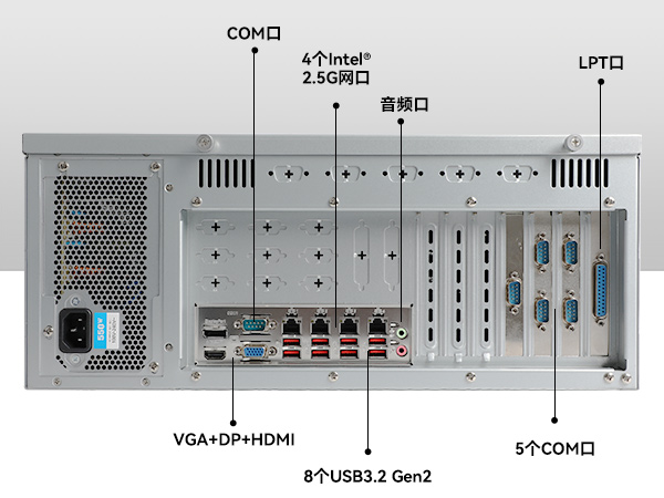 熊猫工控DT-610X-WR680MA是一款4U机架式工控机,支持酷睿12/13代i3/i5/i7/i9处理器和英伟达40/30系显卡。内存大,有4*DDR5,高达128G。有4个网口,6个COM口,13个USB接口,7个PCIe插槽,扩展性强,支持定制。